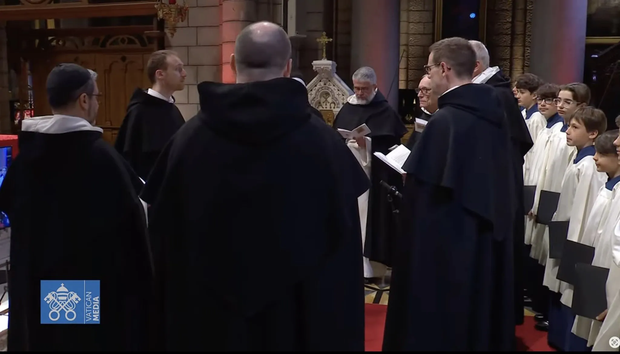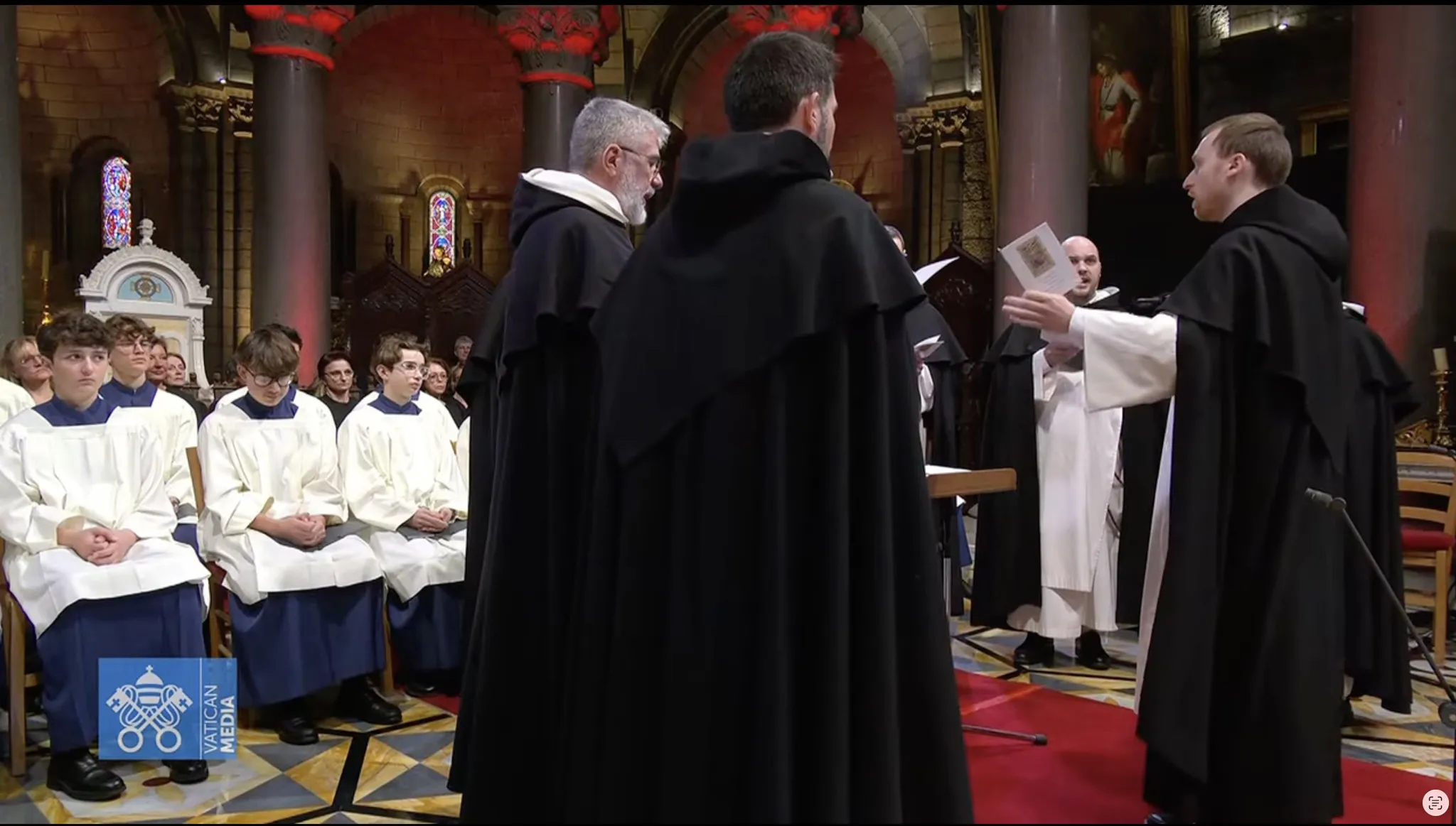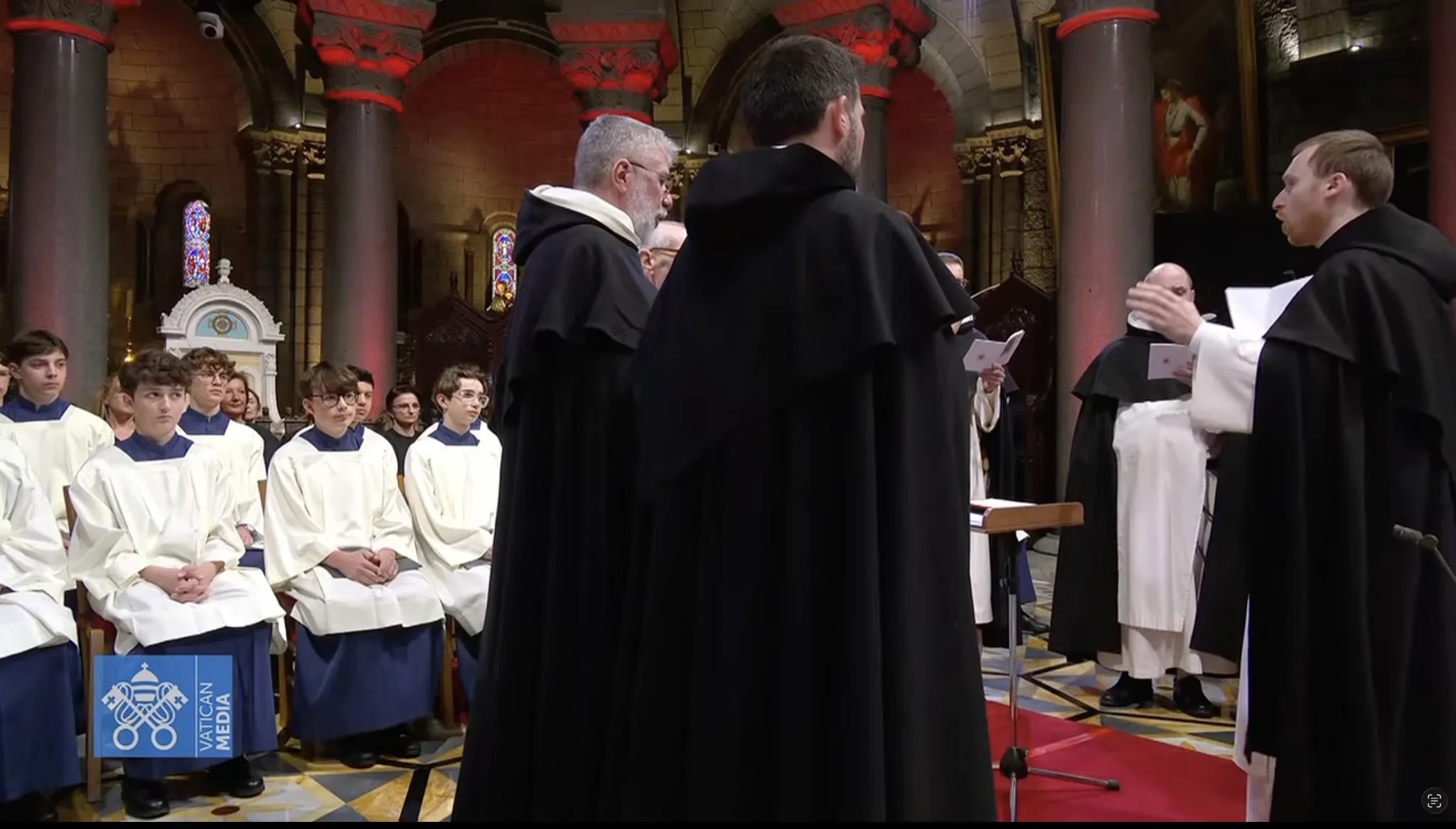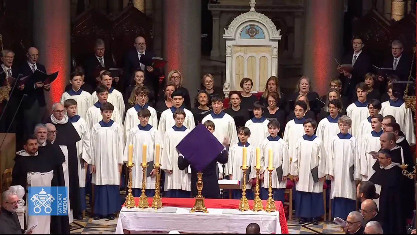Lors de la visite du pape Léon XIV le 28 mars 2026 à Monaco, la communauté des dominicains de Monaco a animé l’office du milieu du jour dans le chœur de la cathédrale avec le pape Léon XIV.