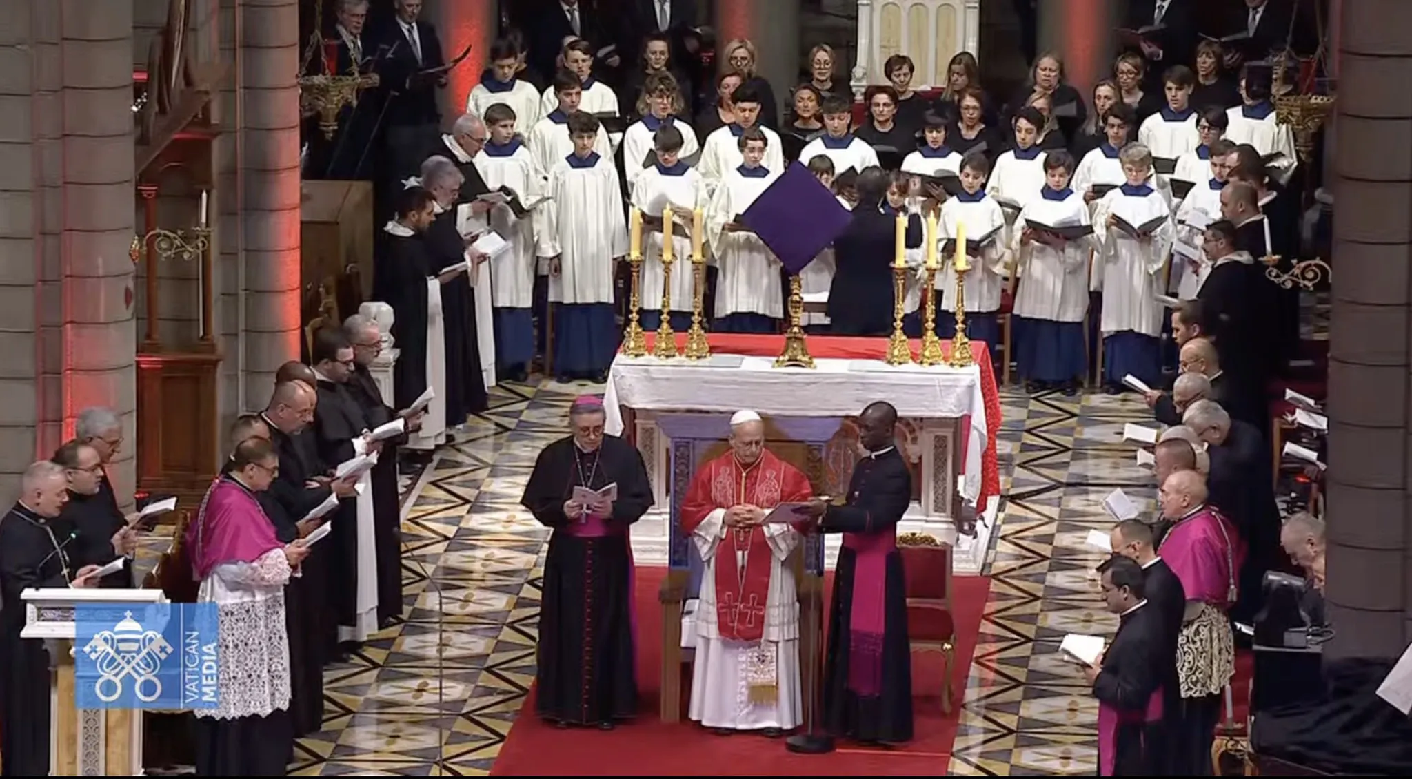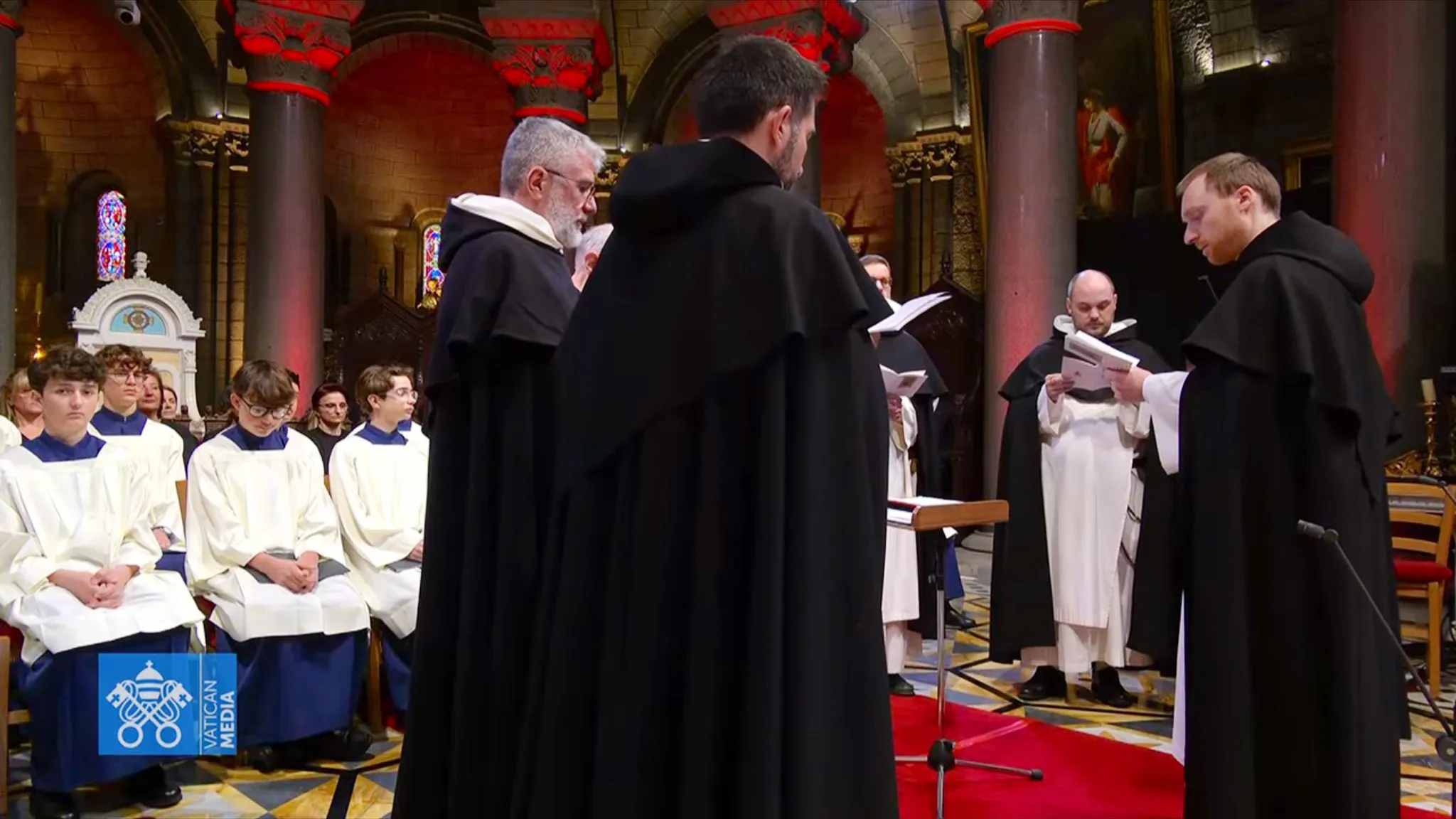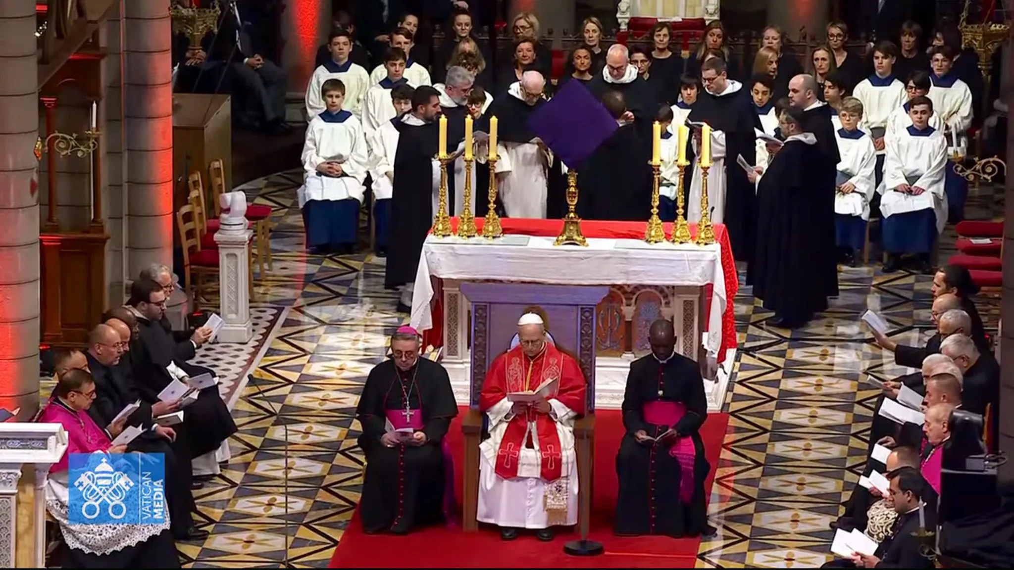 Lors de la visite du pape Léon XIV le 28 mars 2026 à Monaco, la communauté des dominicains de Monaco a animé l’office du milieu du jour dans le chœur de la cathédrale avec le pape Léon XIV.