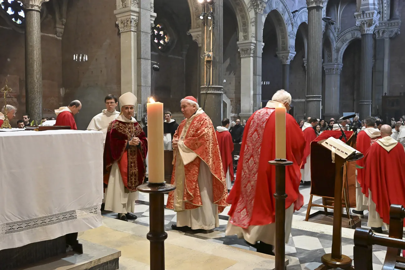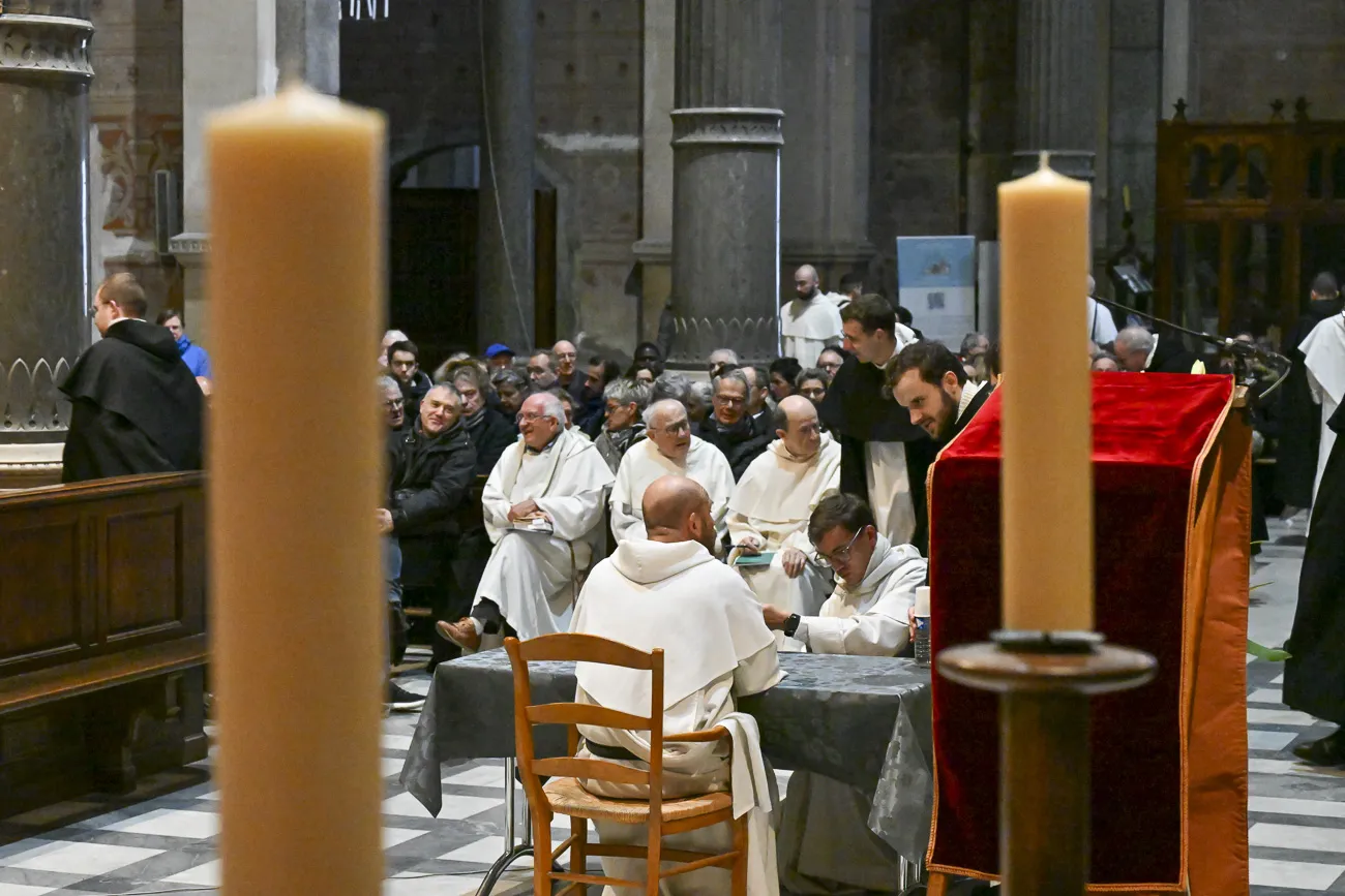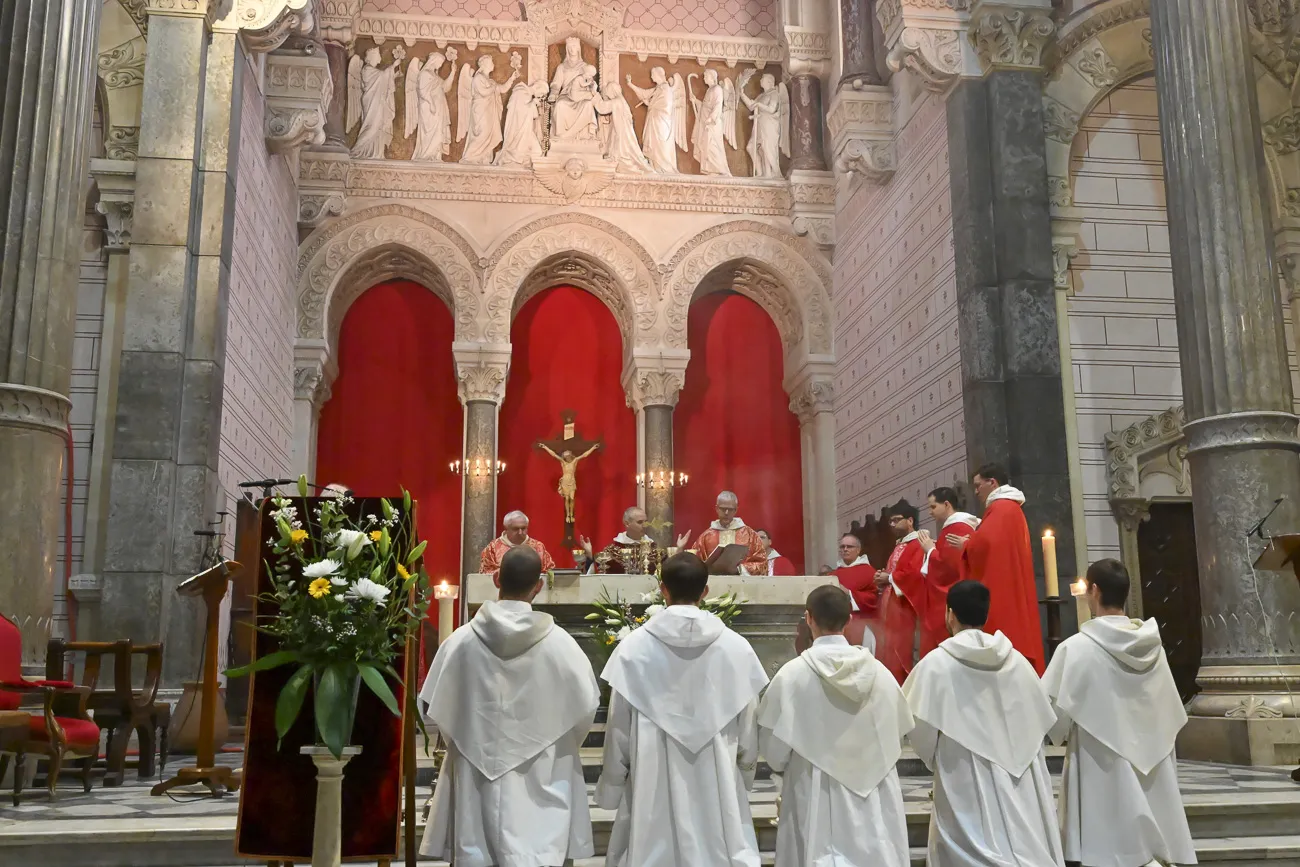La messe a ensuite été concélébrée par Mgr Aveline et Mgr Vesco, ainsi que par les frères Olivier de Saint Martin et Nicolas Tixier, dominicains provinciaux de Toulouse et de France, entourés de nombreux frères dominicains.